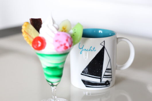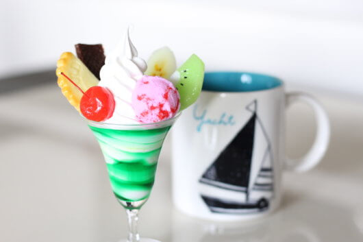 手前のパフェにピントがあっていれ、奥のカップはぼやけています。